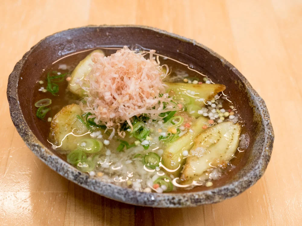 数あるメニューのなかでも、「なすの揚げ浸し」はとくに注文したい一品。