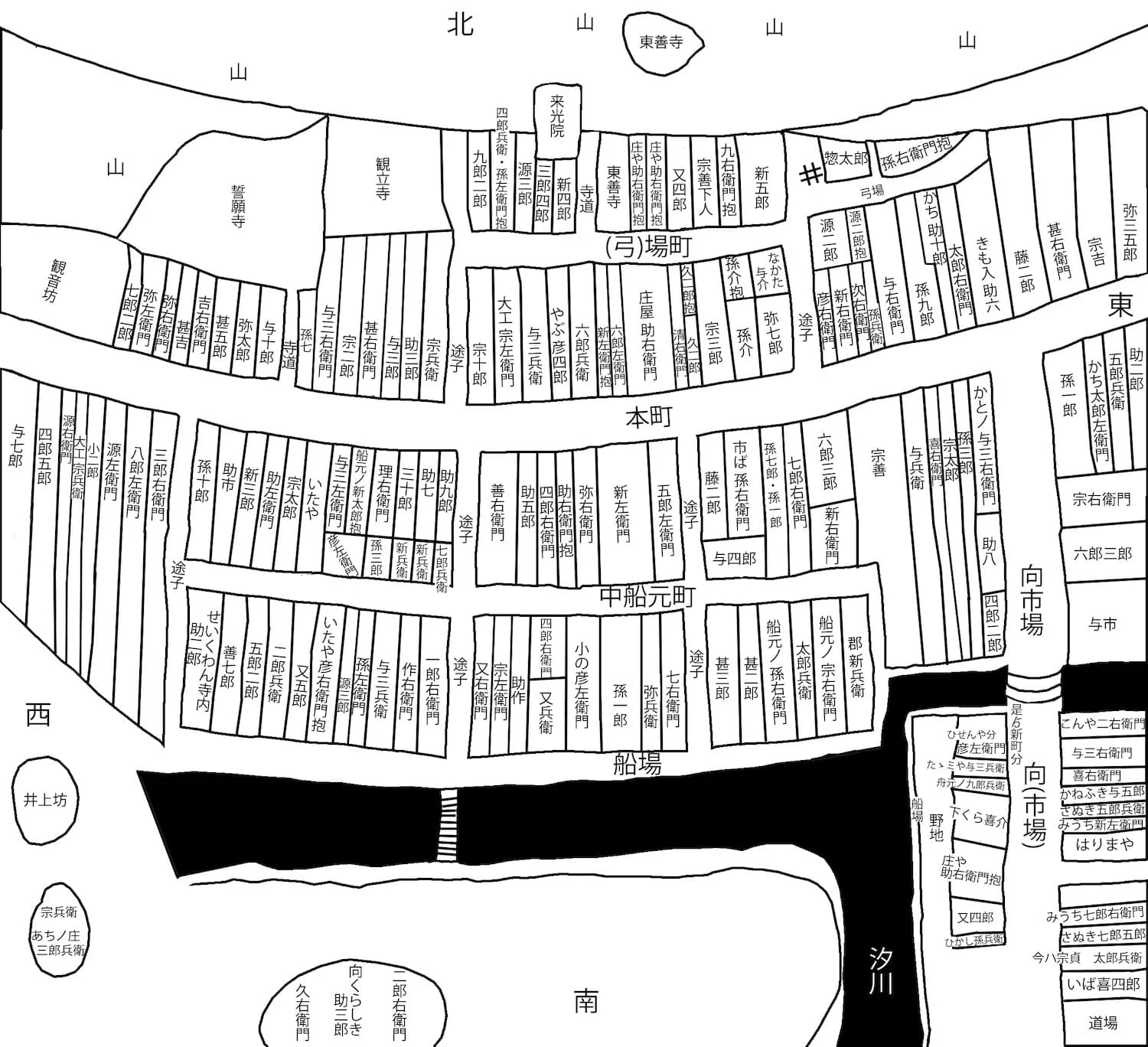 16世紀後半から徐々に町が形成されていきます。港であったため、現在の本町にまずは市場ができました。そこから町が広がっていきます。