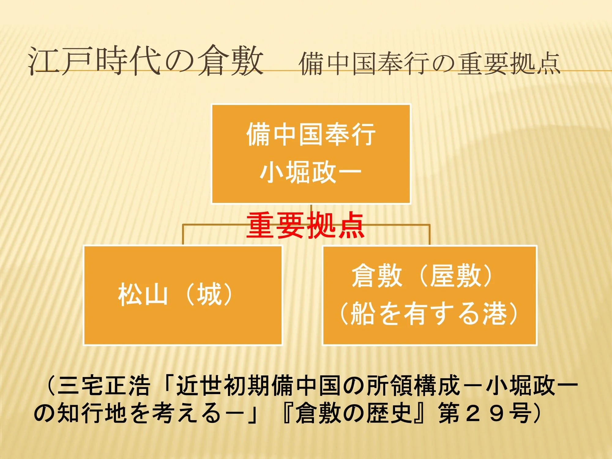 備中国奉行として派遣されたのは小堀正次(こぼり まさつぐ)で、その後1604年に正次の急死により小堀政一(こぼり まさかず)が家督を継ぎ、備中松山城を守りました。備中国奉行の重要拠点であったのは、城のある松山と船を有する港である倉敷です。