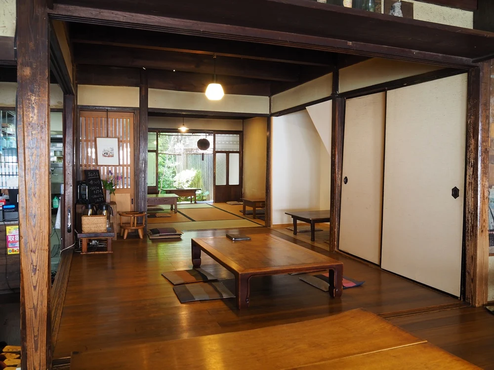 古民家カフェのひとつ「町家喫茶 三宅商店(以下:三宅商店)」は、必要最低限の改修をしているため、外観も内観も歴史が感じられます。